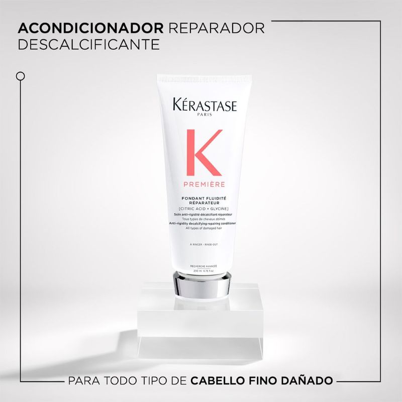 Acondicionador reparador, descalcificante y suavizante para cabello dañado de fino a medio. Elimina la sobredosis de calcio y luego repara el daño con un efecto de doble acción, devolviéndole suavida