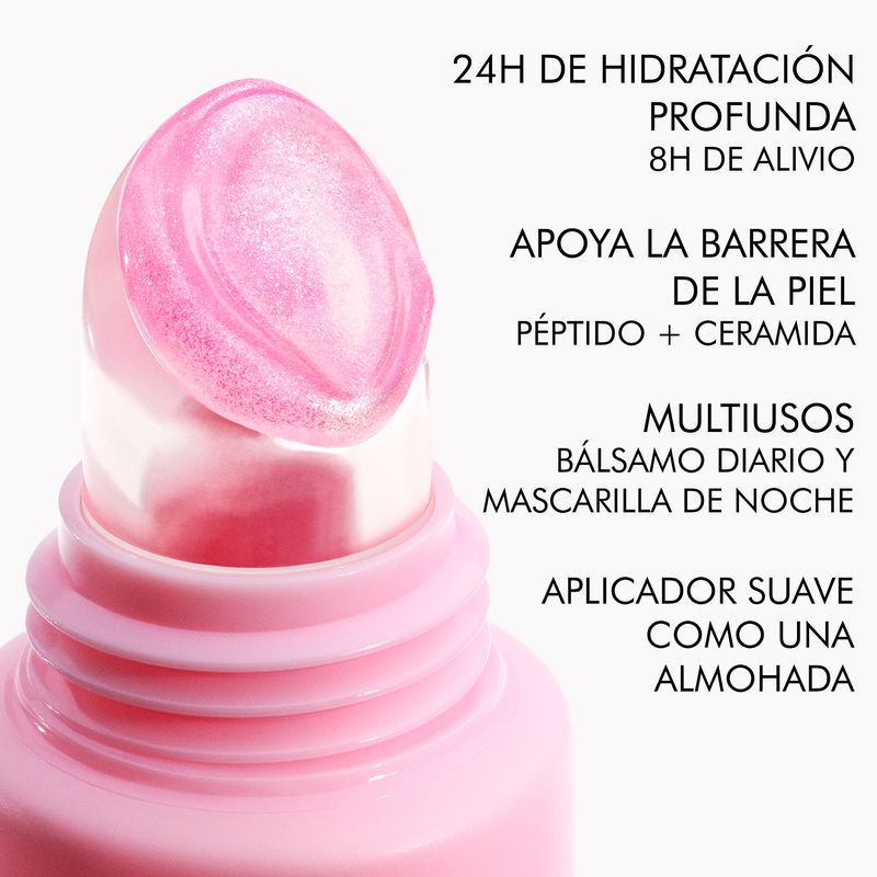 Combinación ideal entre brillo de labios y bálsamo labial, este tratamiento con textura untuosa hidrata intensamente con un toque de color y un efecto brillante.