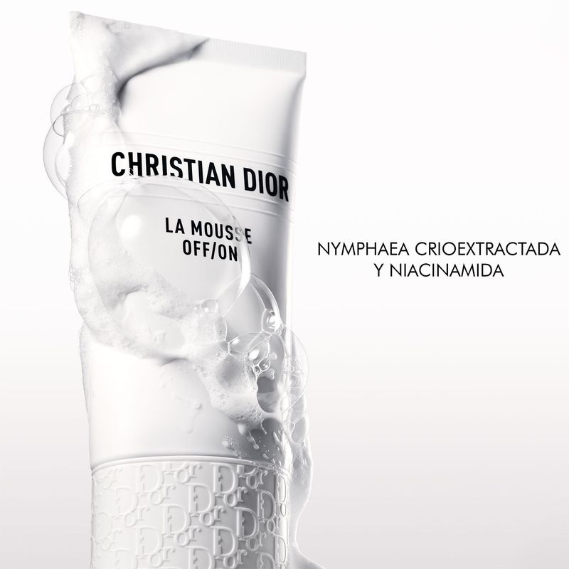 La Mousse OFF/ON, enriquecida con crioextracto de nenúfar blanco purificante y niacinamida, limpia y purifica la piel ofreciendo tratamiento y protección en una textura innovadora.