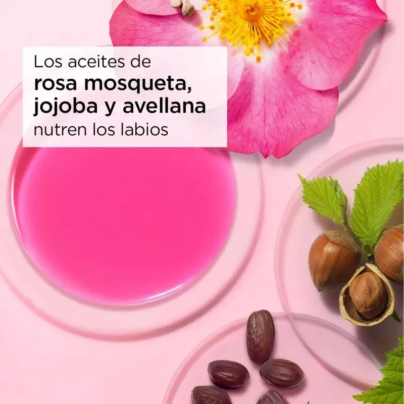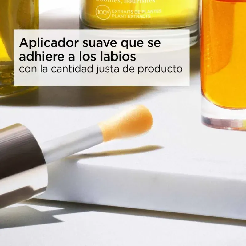 Aceite labial nutritivo enriquecido con un trío de aceites vegetales para nutrir, reconfortar y rellenar visiblemente los labios, a la vez que proporciona un escudo protector de color de alto brillo.