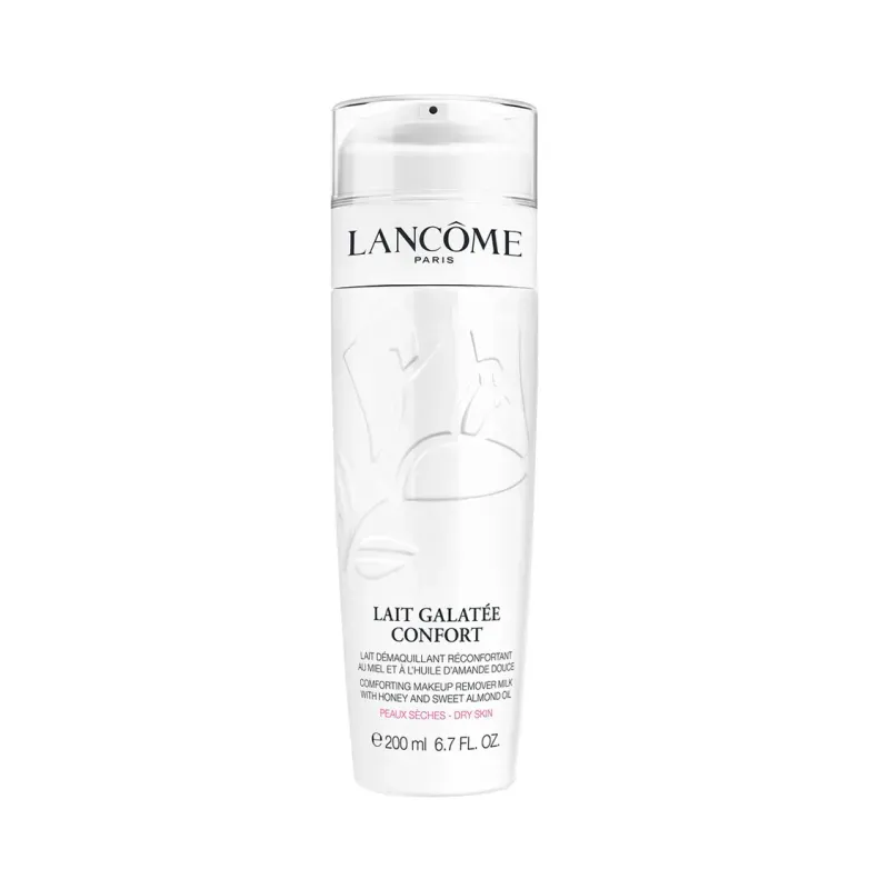 Mime su piel con la suave y delicada leche desmaquillante de rostro para pieles secas Galatée Confort de Lancôme.