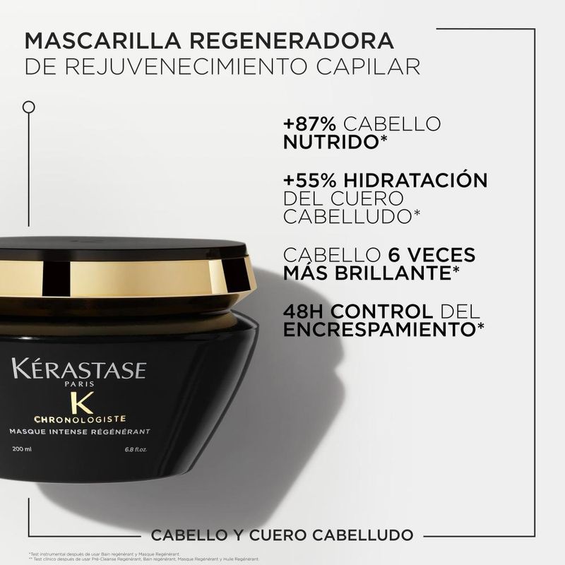 Mascarilla regeneradora que previene de los signos de la edad tanto en el pelo como el cuero cabelludo. Proporciona hidratación gracias al Ácido Hialurónico que rellena la fibra. Fortalece el cabello,