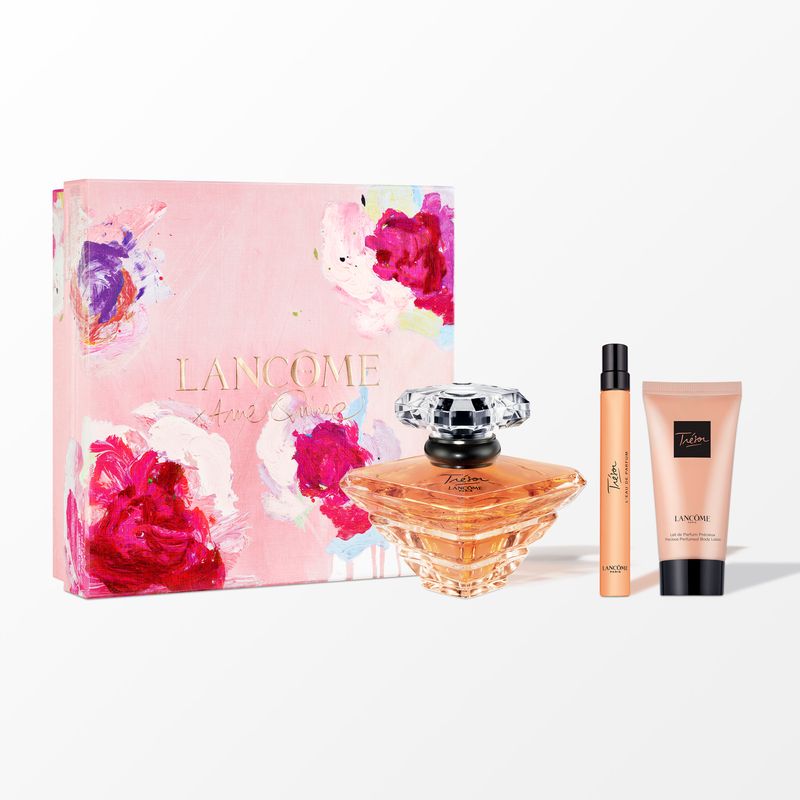 Incluye: Eau de Parfum Tresor 100 ml + Eau de Parfum Tresor 10 ml + Loción Corporal 50 ml.